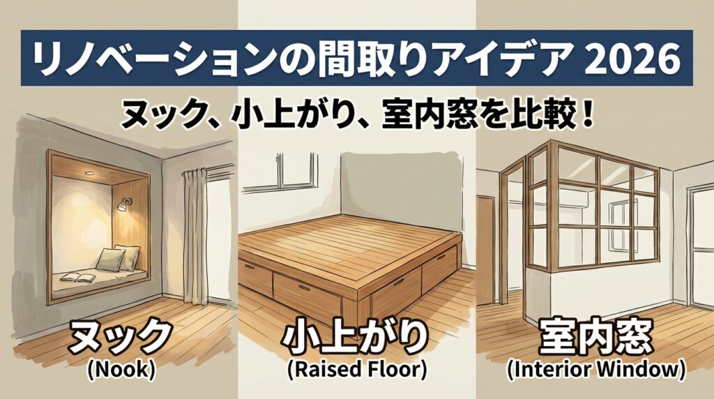 リノベーション2026年3月10日リノベーション間取りアイデア2026|ヌック・小上がり・室内窓を比較